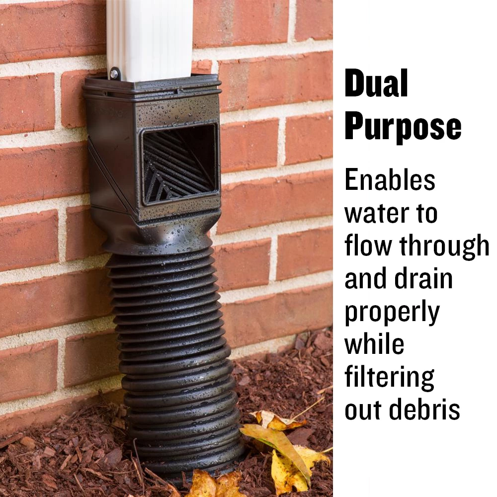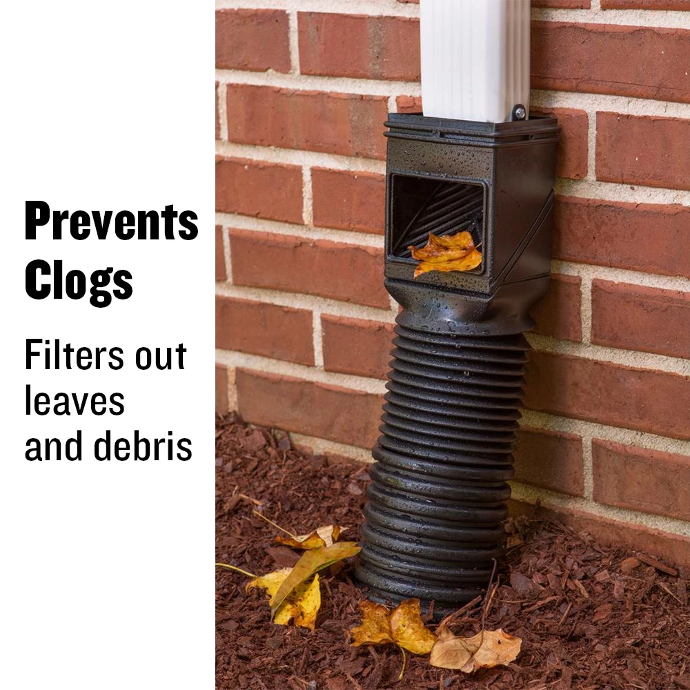 - FlexGrate filters leaves and debris from downspouts to keep drains clear