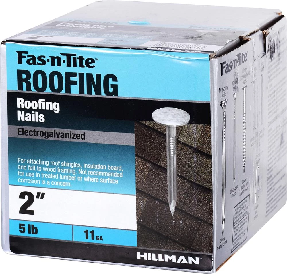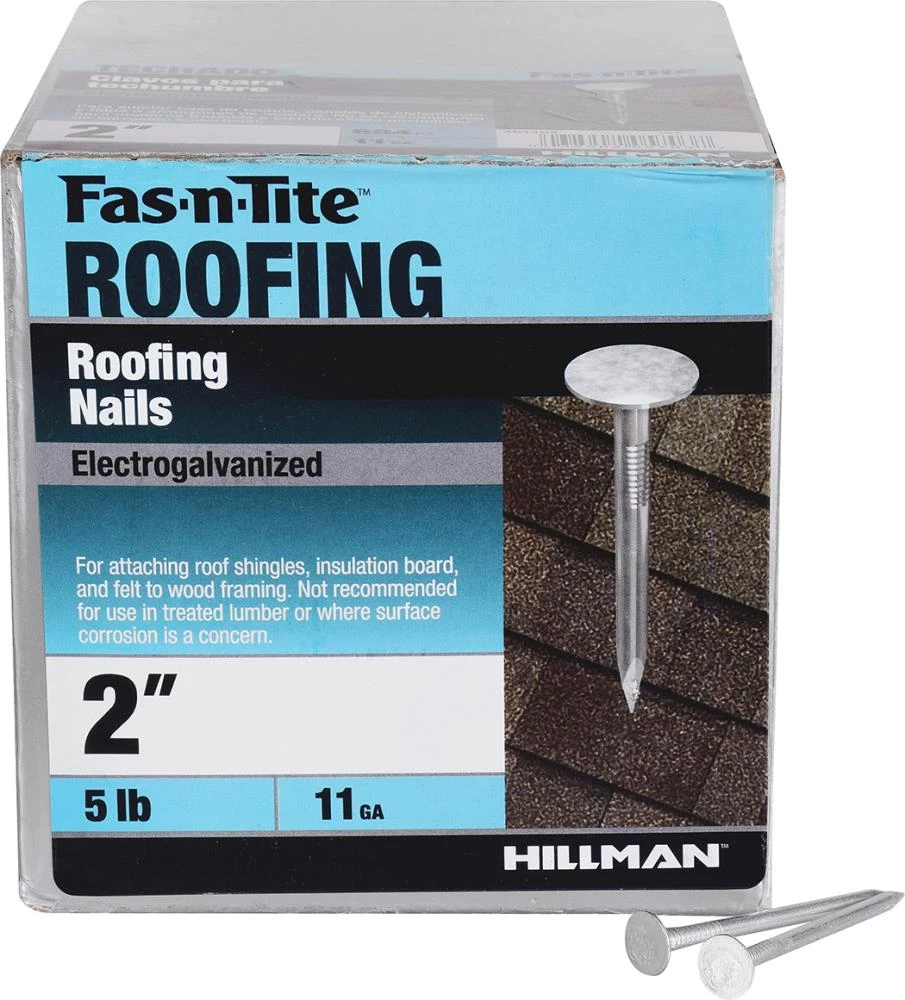 Manufactured for quick and easy installation, electro-galvanized roofing nails are ideal for attaching roof shingles, insulation board, and felt to wood framing. The large, Flat Head provides a large bearing surface and strong holding power for a secure finish. This adds more traction to shingles so as to avoid separation from the roof. The sharp point helps with quick driving without damaging your roofing materials. These nails have been electro-galvanized for corrosion resistance with a smooth, more aesthetically pleasing finish. Do not use in treated lumber or where corrosion is a concern.
