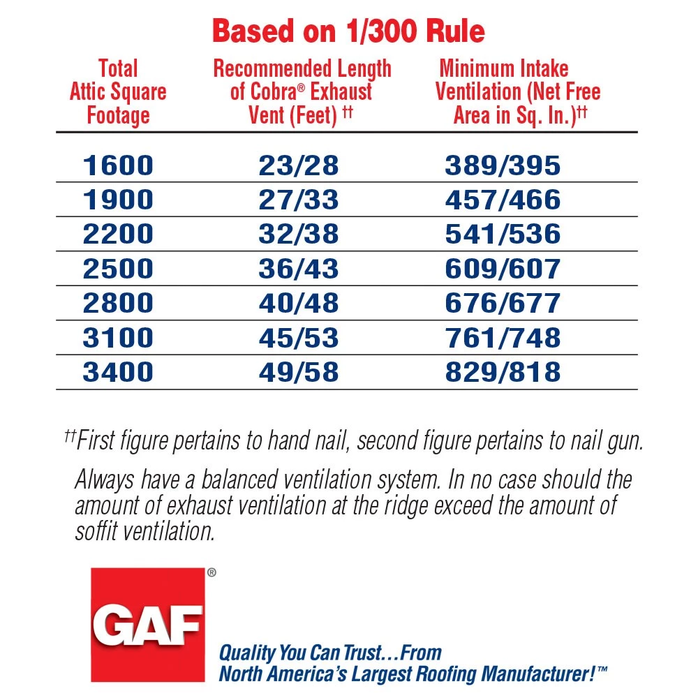 - Effective: provides 14.1-sq in/linear foot of net free ventilating area