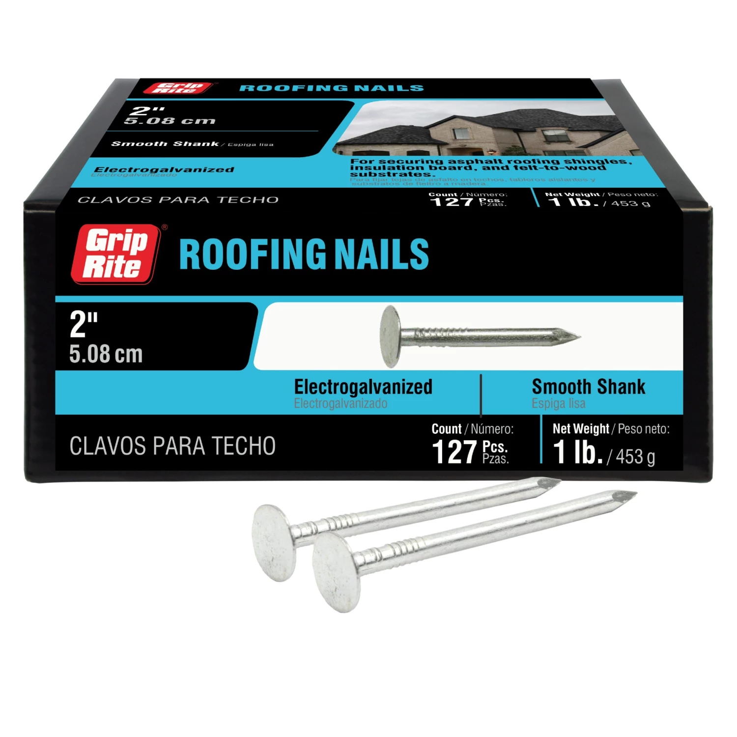 Grip-Rite fasteners are the choice of contractors who want professional results from a brand they know and trust. Grip-Rite galvanized roofing nails are used for applying asphalt shingles, insulation board, and felt to wood substrates. Roofing nails have a large head and thicker barbed shank to provide greater holding power. Roofing nails are also used to install vinyl siding as well.