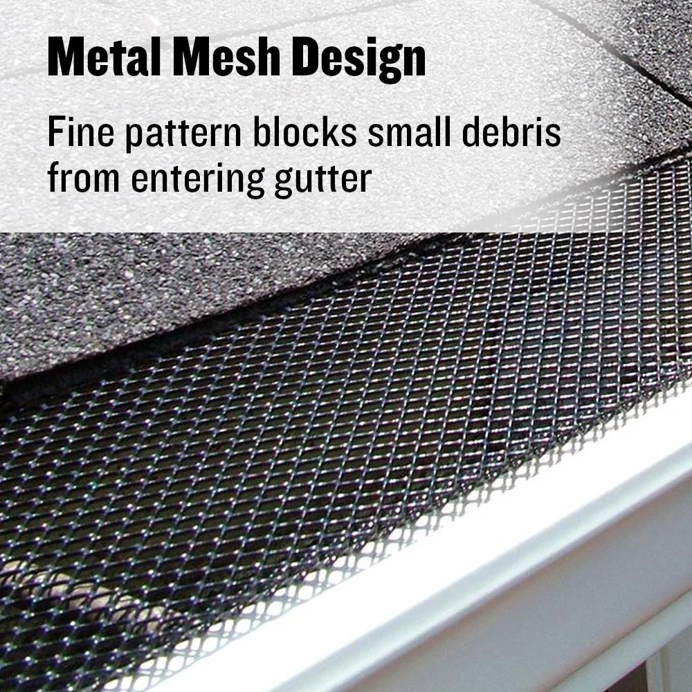 Amerimax metal lock-In gutter guard can be used on 4 in., 5 in., and 6 in. K style gutters. The pre-notched design allows for overlapping which eliminates gaps between the guards. They are easy to install, just slide the flat side under the shingle and lock the curved portion into the front edge of the gutter. This product is designed to handle high volume water flow and hold up to the heat and cold better than vinyl gutter guards.