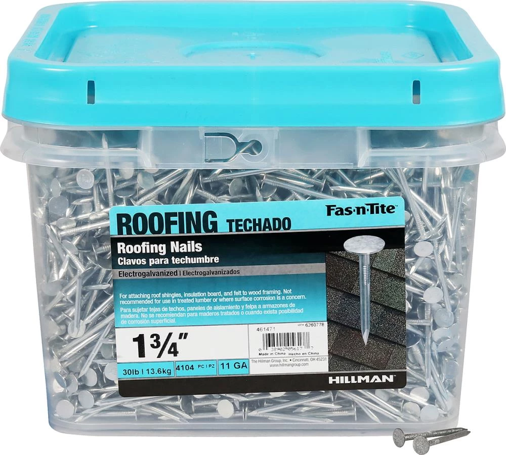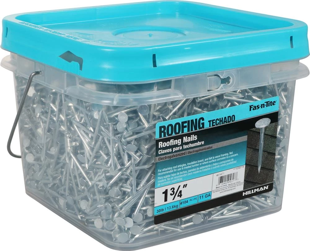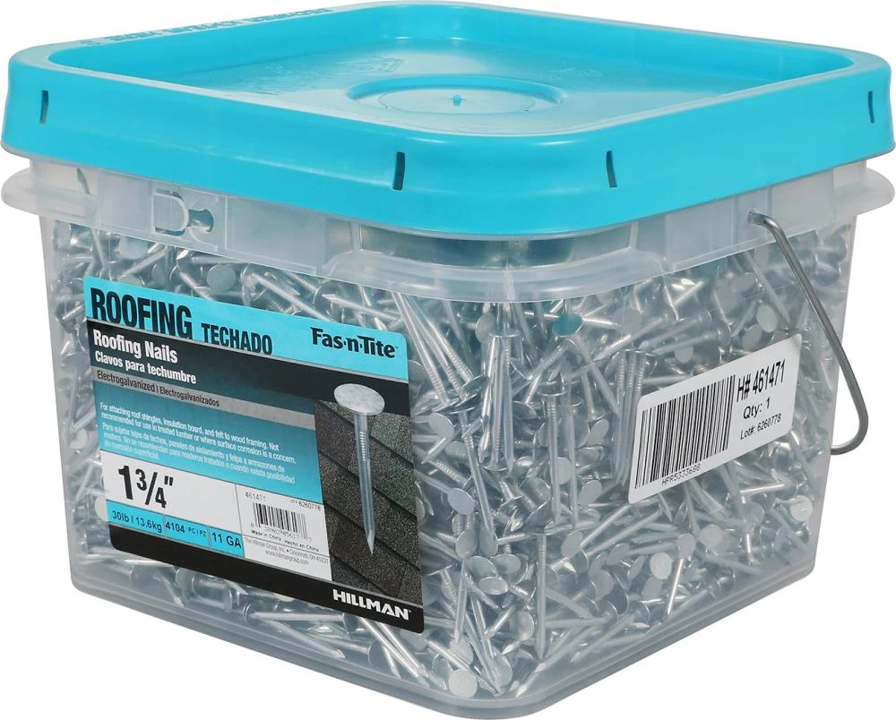 Manufactured for quick and easy installation, electro-galvanized roofing nails are ideal for attaching roof shingles, insulation board, and felt to wood framing. The large, Flat Head provides a large bearing surface and strong holding power for a secure finish. This adds more traction to shingles so as to avoid separation from the roof. The sharp point helps with quick driving without damaging your roofing materials. These nails have been electro-galvanized for corrosion resistance with a smooth, more aesthetically pleasing finish. Do not use in treated lumber or where corrosion is a concern.