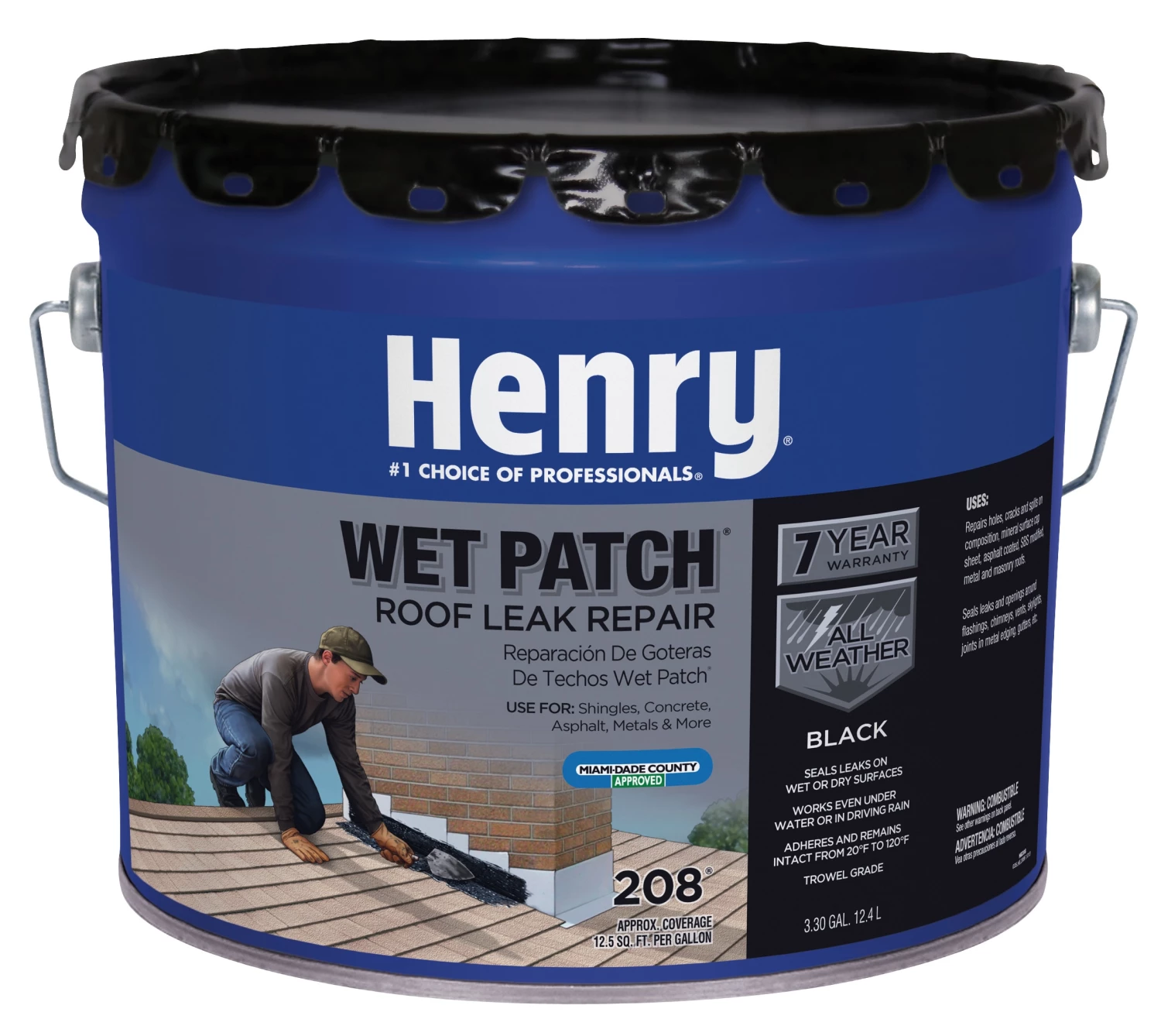 Henry 208 wet patch roof leak repair, 3-1/2 Gallon, wet patch roof cement, for wet or dry surface, adheres even under water.