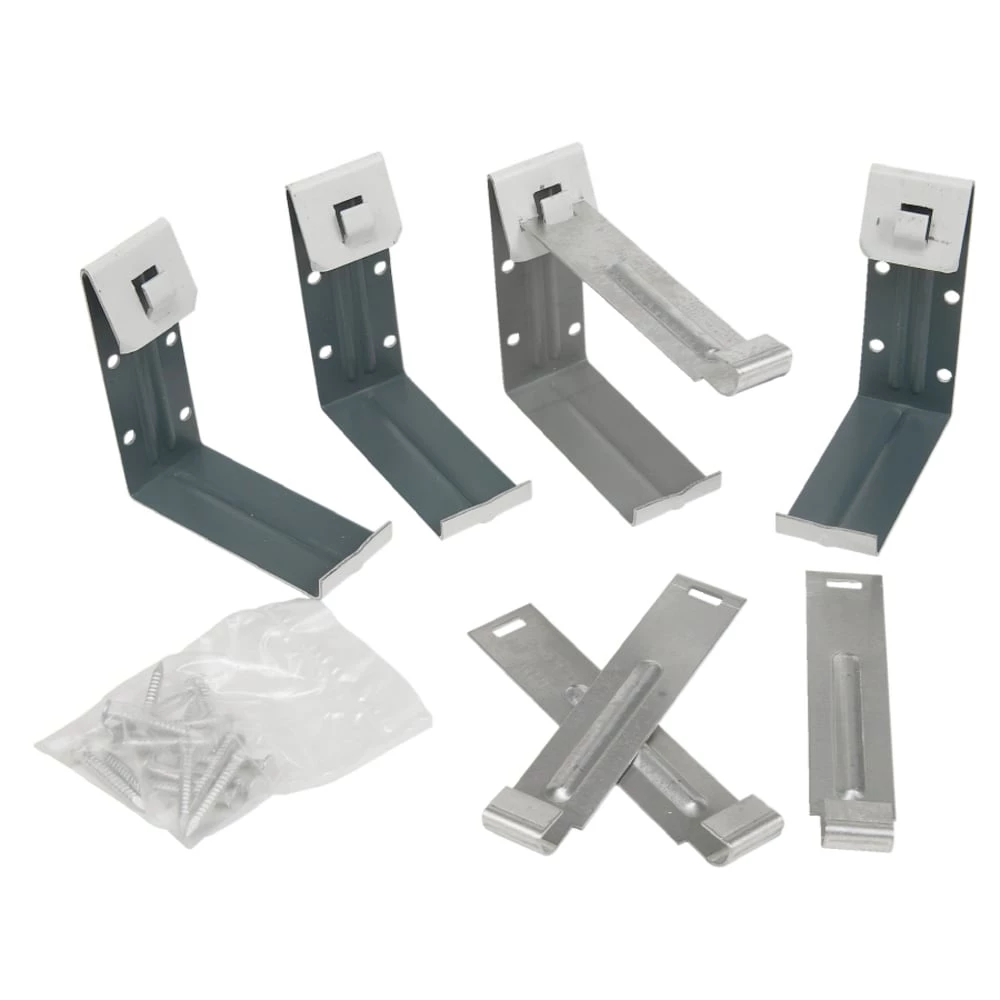 The 5 in. aluminum fascia brackets (4-Pack) are L-shaped and have a top bar for a clean, neat appearance. These brackets are designed to attach to fascia so the gutter can slide into position for easier installation.