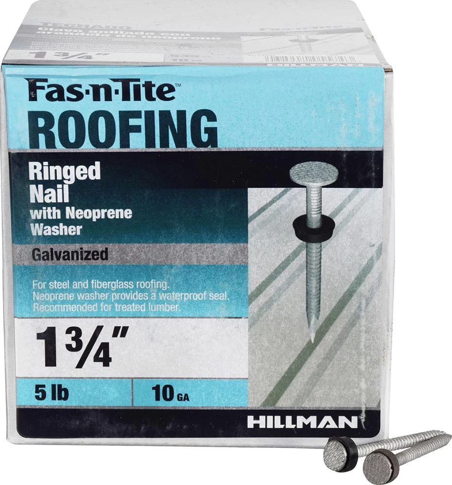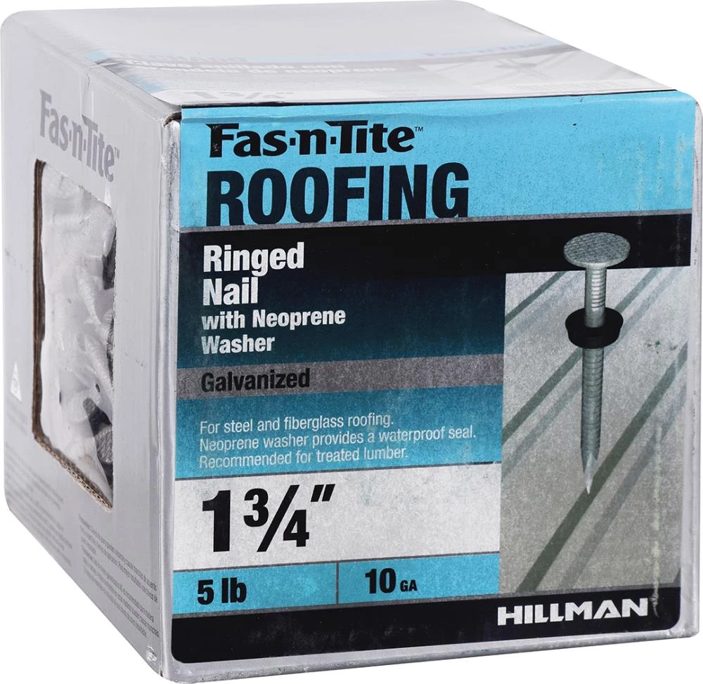 Manufactured for quick and easy installation, these hot-dipped galvanized roofing nails with neoprene washers are ideal for steel and fiberglass roofing applications. The ringed shank on these nails provides strong holding power, while the neoprene washer provides a waterproof seal. The sharp point helps with quick driving without damaging your roofing materials. The Flat Head helps to add more traction to your shingles to prevent separating from your roof. The waterproof washer helps to preserve your materials. Recommended for exterior use and with treated lumber.
