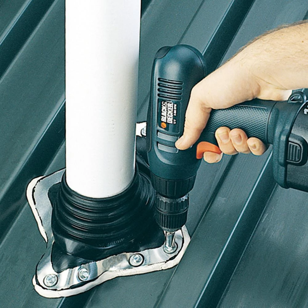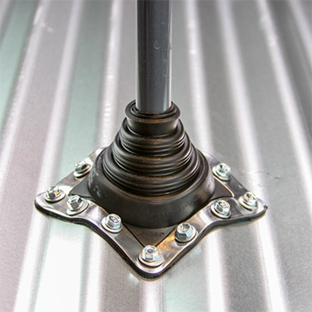 The Oatey Master Flash® roof flashing is an adjustable rubber pipe flashing with a soft aluminum base that is able to mold to profiled metal roof panels, for any roof vent penetrations from 1/4-in up to 4-in diameter. It provides protection for pipes, cables, conduits and wires.