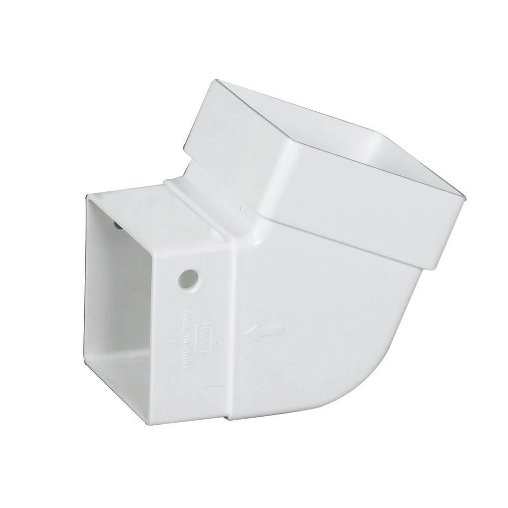 Use the Amerimax 2 In. square vinyl elbow to redirect downspouts and help prevent water damage. This elbow has a durable vinyl construction and fits 2 In. square downspouts. Featuring a maintenance-free, crush- and dent-proof design, this elbow is designed to withstand extreme temperatures.
