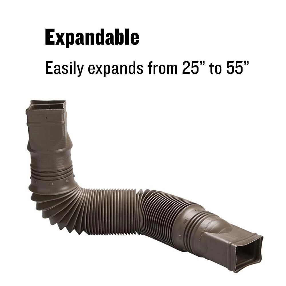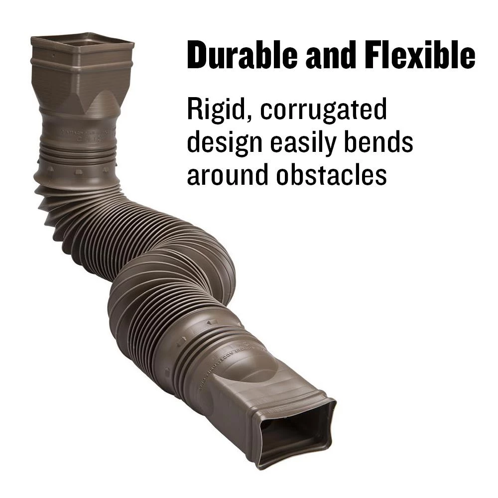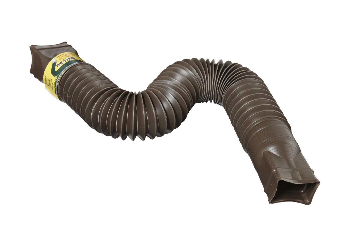 The Flex-A-Spout downspout extension features a durable plastic construction and brown color to match your home. This flexible downspout extension can be used to redirect runoff and help prevent water damage. This downspout extension fits 2 in. x 3 in. and 3 in. x 4 in. downspouts as well as 3 in. and 4 in. round downspouts.