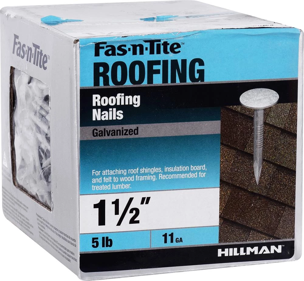 Manufactured for quick and easy installation, hot-dipped galvanized roofing nails are ideal for attaching roof shingles, insulation board, and felt-to-wood framing. The large, Flat Head provides a large bearing surface and strong holding power for a secure finish. The hot-dipped galvanized finish on these nails provides superior corrosion resistance. Recommended for exterior use and with treated lumber. A sharp point helps with quick driving without damaging roofing materials. The Flat Head adds more traction in order to prevent separation from the roof.