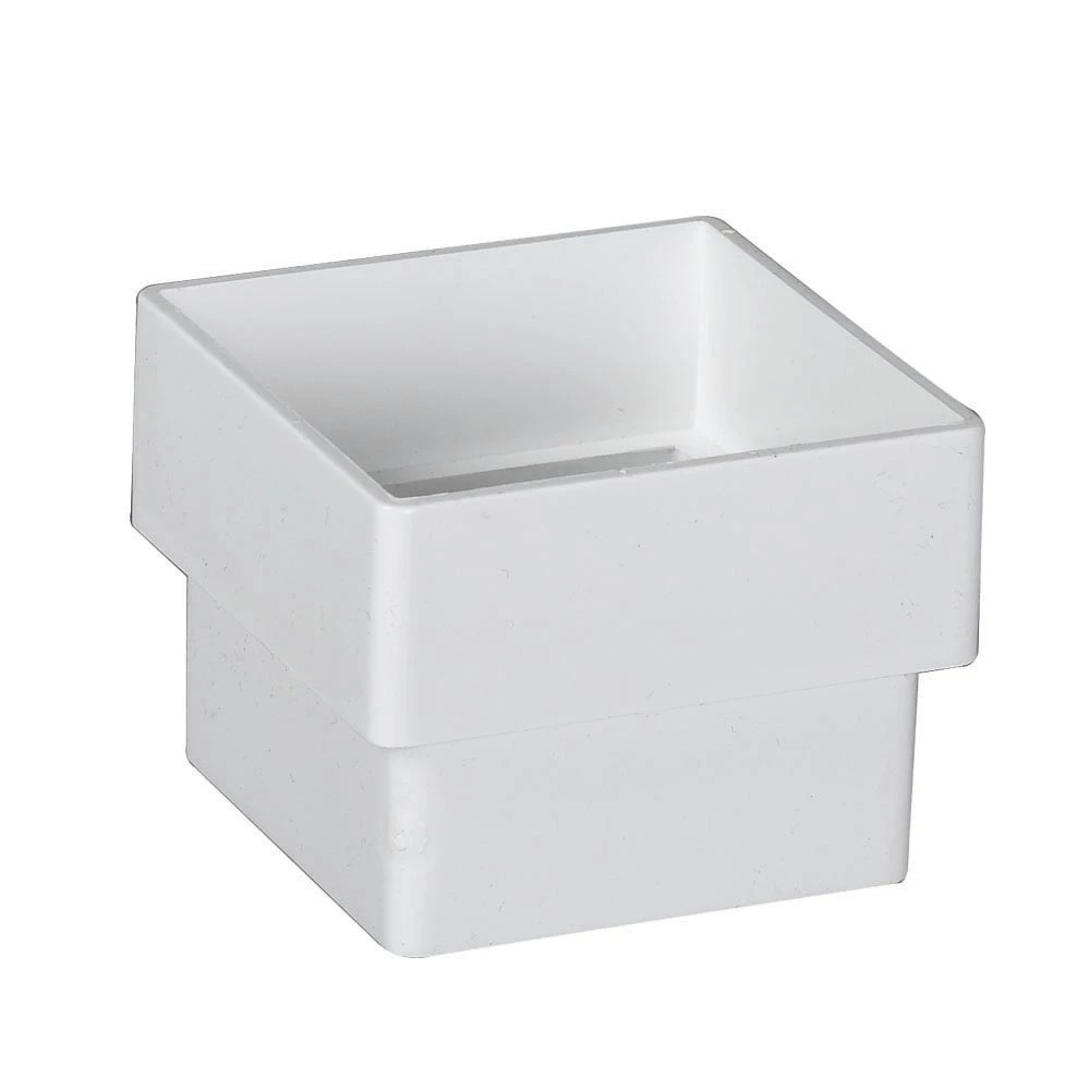 The Amerimax 2 In. vinyl downspout connector can be used to create longer downspout assemblies by connecting 2 or more 10 Ft downspouts. Featuring a white finish and square design, this durable, vinyl downspout connector is also dent and crush proof. This connector is designed to withstand extreme temperatures and has UV stabilizers to help prevent UV light degradation. Easy to install, this downspout connector does not require painting.