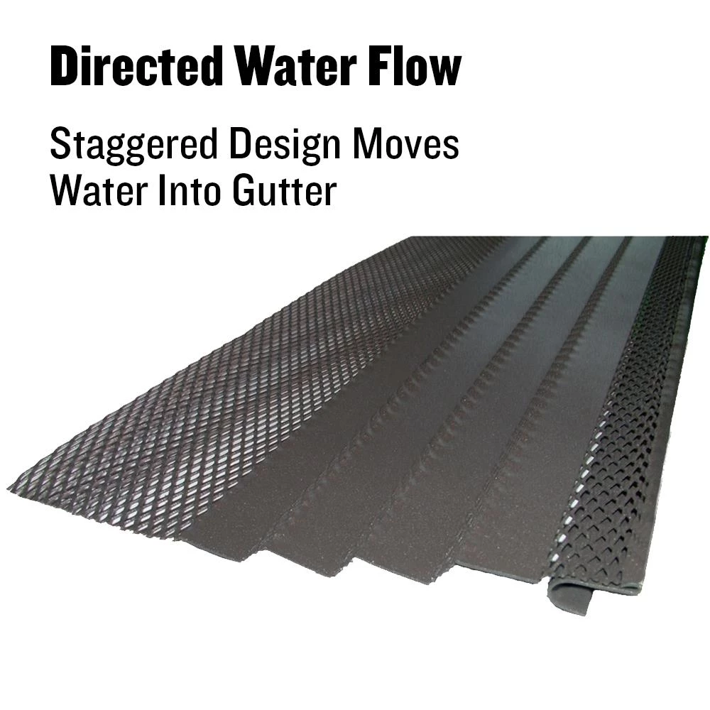 Amerimax Hoover Dam staggered design forces water into the gutter while allowing airflow to aid wind in keeping the surface clear of leaves and debris. This is an easy to install professional grade gutter cover that will keep your gutters flowing freely and prevent rodent intrusion. Easy to install, just slide the flat side under the shingles and place the curved portion into the front edge of the gutter.
