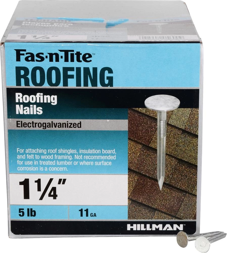 Manufactured for quick and easy installation, electro-galvanized roofing nails are ideal for attaching roof shingles, insulation board, and felt to wood framing. The large, Flat Head provides a large bearing surface and strong holding power for a secure finish. This adds more traction to shingles so as to avoid separation from the roof. The sharp point helps with quick driving without damaging your roofing materials. These nails have been electro-galvanized for corrosion resistance with a smooth, more aesthetically pleasing finish. Do not use in treated lumber or where corrosion is a concern.