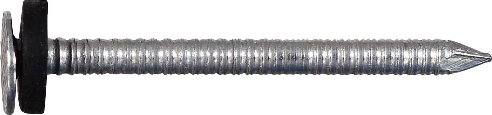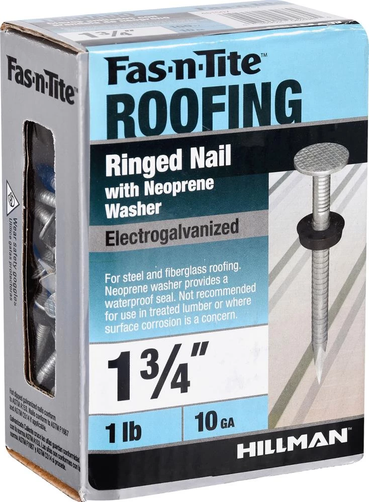 Manufactured for quick and easy installation, these electro-galvanized roofing nails with neoprene washers are ideal for steel and fiberglass roofing applications. The ringed shank on these nails provides strong holding power, while the neoprene washer provides a waterproof seal. These roofing nails come with a broad head and a thin, sharp shaft for fastening roofing shingles. The sharp point helps with quick driving without damaging your roofing materials. The Flat Head helps to add more traction to your shingles preventing separation from the roof. Do not use in treated lumber or where corrosion is a concern.