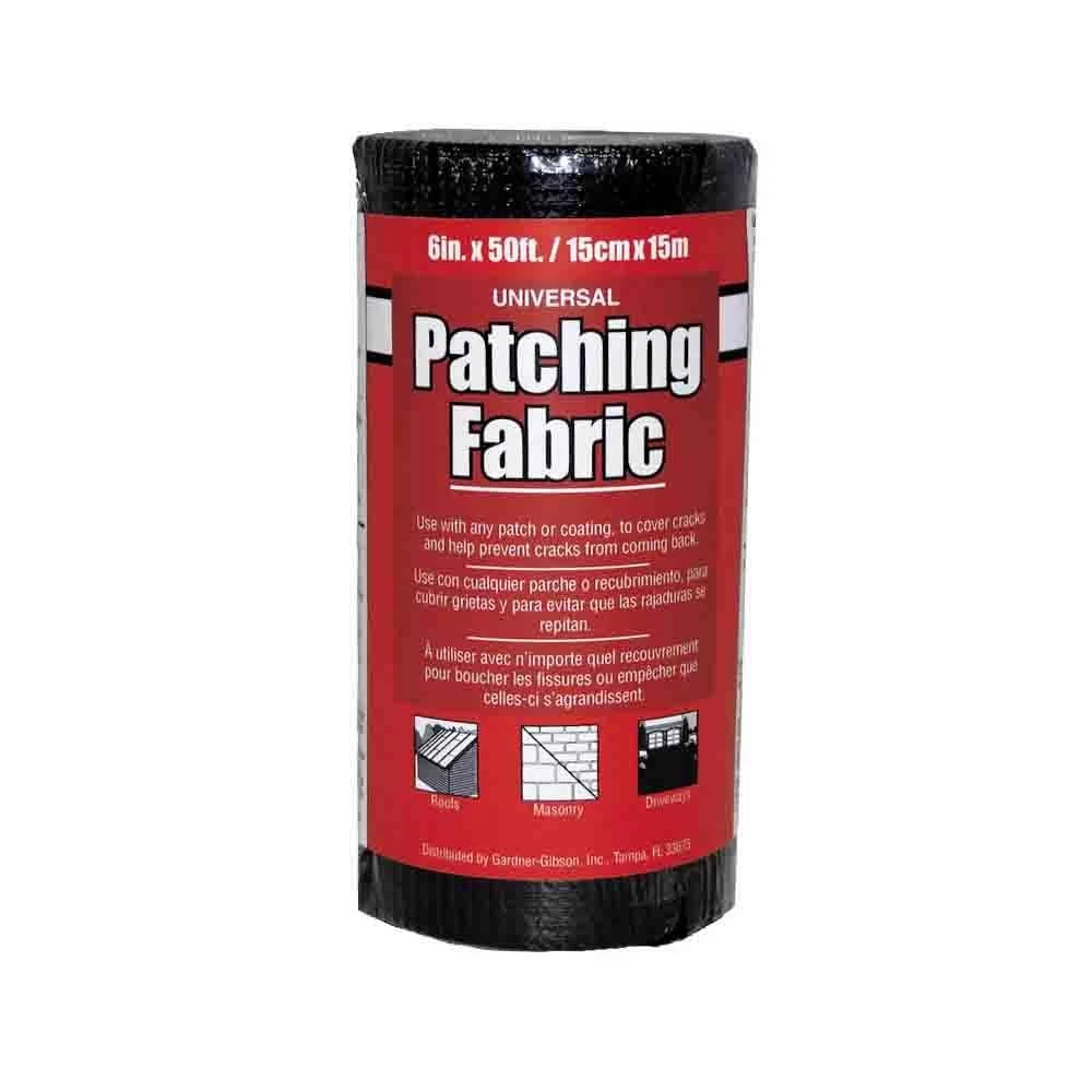 Universal patching fabric is a durable membrane designed to reinforce asphalt roof patching, white roof patching, stucco and masonry patches and driveway products while repairing cracks, holes, seams and joints. Its durable open mesh weave assures thorough bonding and allows for expansion and contraction.