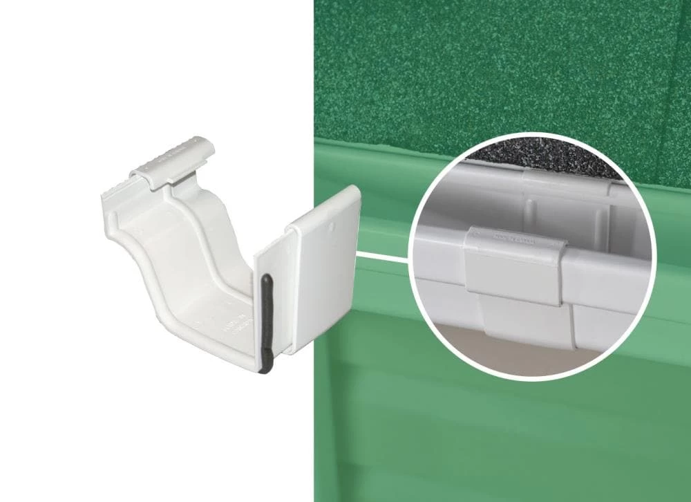 - Joins traditional-style gutters and corners and re-directs rainwater runoff